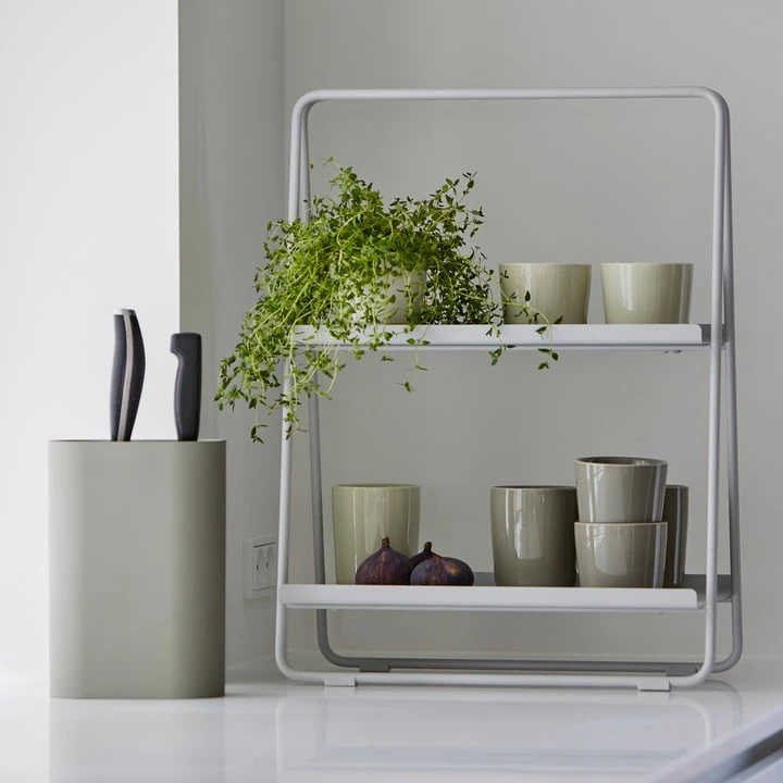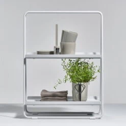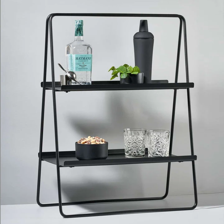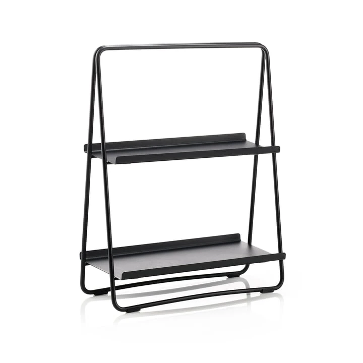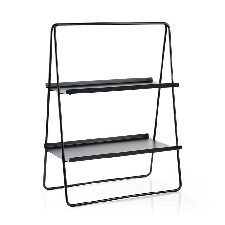 The A-Table from Zone Denmark is a successful mixture of side table and shelf. Its A-shaped silhouette makes it a special piece of furniture that can be used in many ways. In the bathroom, for example, towels and cosmetics can be placed on the two levels, in the study it serves as a bookshelf and in the living room it can be used as a shelf. A-Table serves as a bookshelf in the study and in the living room it can be used as a bar to stylishly display fine bottles and glasses. It can also be used as a bedside table in the bedroom A-Table and offers storage space for all kinds of objects.