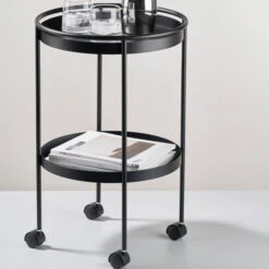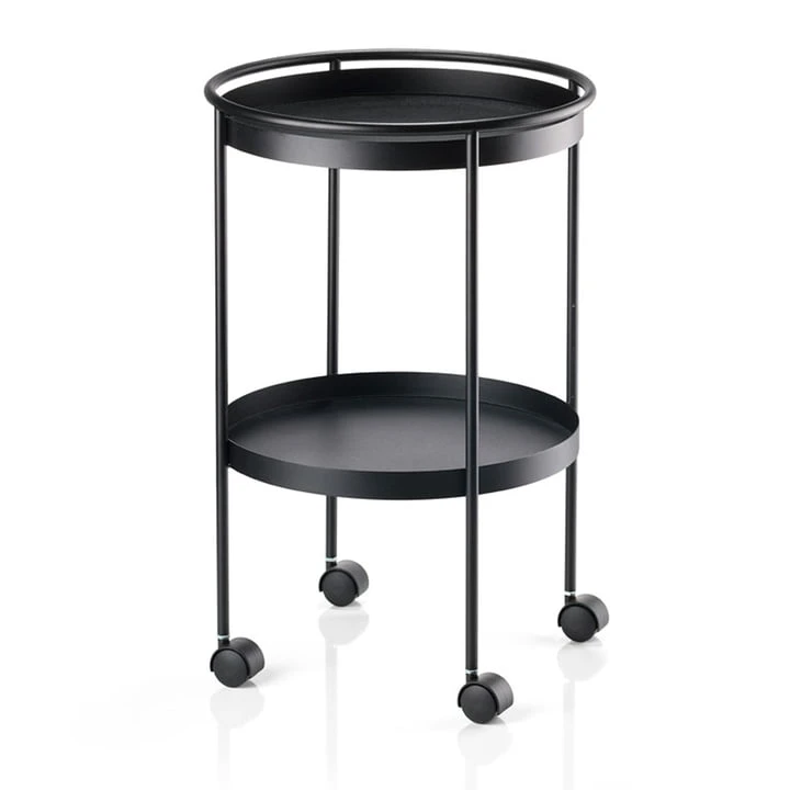 The exquisite Rocks bar trolley with wheels from Zone Denmark was designed by the duo Mavro // Lefévre and is characterized by its simple yet elegant design. The frame and tray are made of powder-coated metal. The trolley has smooth rollers to move it as needed. Equipped as a house bar with fine drops and glasses or used as a side table for magazines or a cup of coffee – the Rocks bar trolley is versatile.